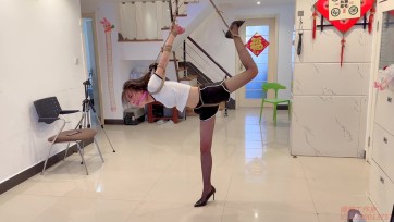 【象人工作室】【嗷嗷】女舞蹈生的双折腿空中紧缚,蒙眼勒嘴感官封锁,吊缚紧缚经验值积累