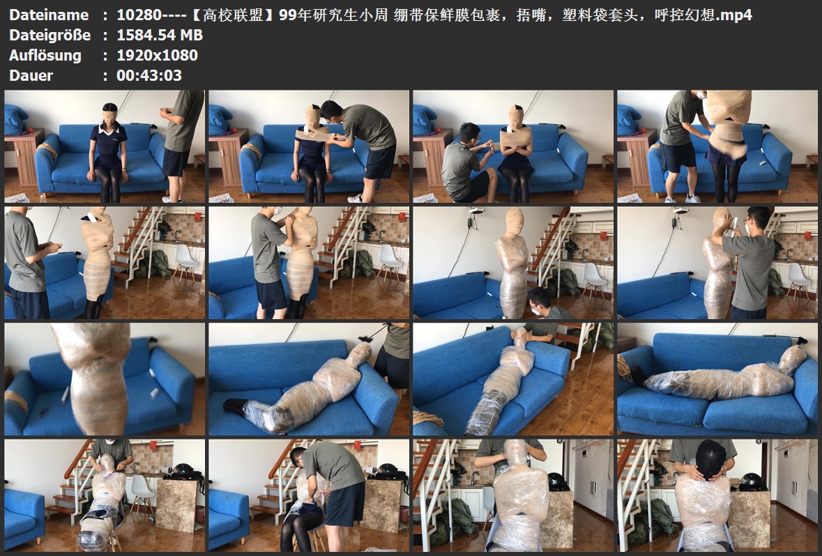 【高校联盟】99年研究生小周 绷带保鲜膜包裹,捂嘴,塑 ...