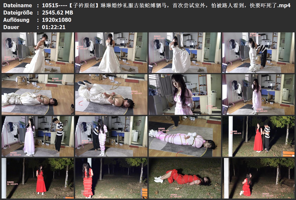 琳琳婚纱礼服古装蛇缚驷马,首次尝试室外,怕被路人看到,快要吓死了