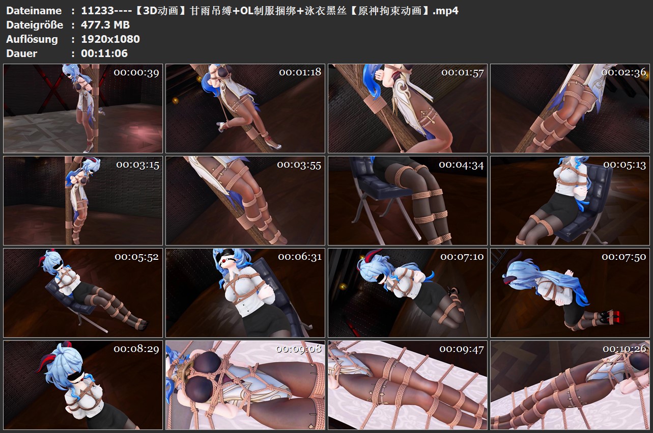 【3D动画】甘雨吊缚+OL制服捆绑+泳衣黑丝【原神拘束动画 ...