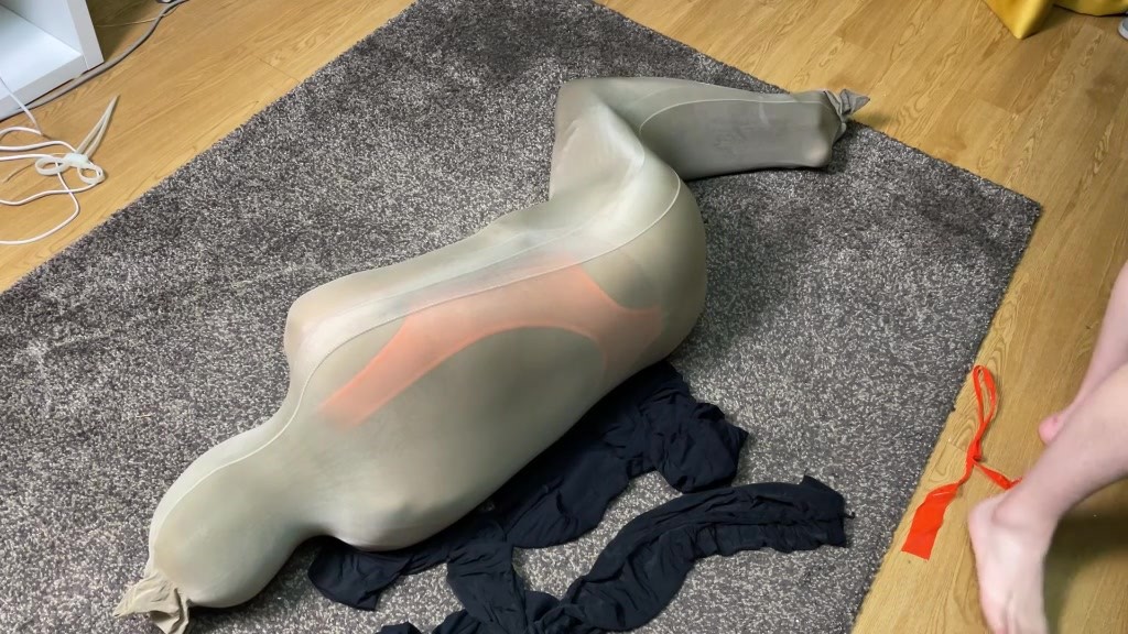 主人黑魔法师从真空乳胶柜里面逃脱,决定立刻向敢调教主人的汐进行惩罚,此时的汐还在卧室里面玩着手机,全然不知道自己的主人已经从真空乳胶柜里面逃出来了,于是黑魔法师趁着汐不注意,冲上去用丝袜把汐按在床上制服了。黑魔法师拿来了几双肉色丝袜,把被制服的汐装进了这些肉色丝袜里面,汐被包裹成了肉色丝袜的木乃伊,黑魔法师把变成木乃伊的汐平放在地上,等到汐放松下来,黑魔法师才拿着皮鞭走到汐的身边开始鞭打汐,惩罚汐居然敢对主人下手的行为。黑魔法师打了汐几分钟才停下来,之后黑魔法师拿来了塑胶袋,把塑胶袋隔着丝袜贴在汐的脸上进行惩罚,戴好塑胶袋以后,黑魔法师继续鞭打汐的身体,调教过后,黑魔法师打开手机遥控开启贴在丝袜里面的电击器,开始用电击刺激汐的身体,让汐得不到休息,而黑魔法师去找下一个调教汐的方法了。汐被电击刺激了很久,黑魔法师把汐按在地上,随后开始刺激汐的私密部位,同时夹击,不停按摩刺激着汐的敏感部位,最终把汐一直玩弄到虚脱才停下