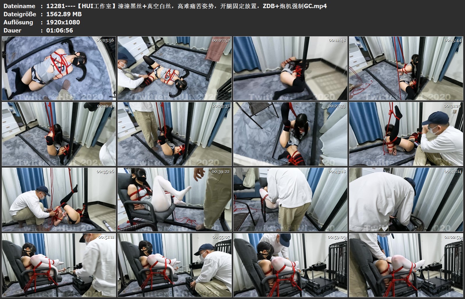 【HUI工作室】潼潼黑丝+真空白丝,高难痛苦姿势,开腿固定放置,ZDB+炮机强制GC