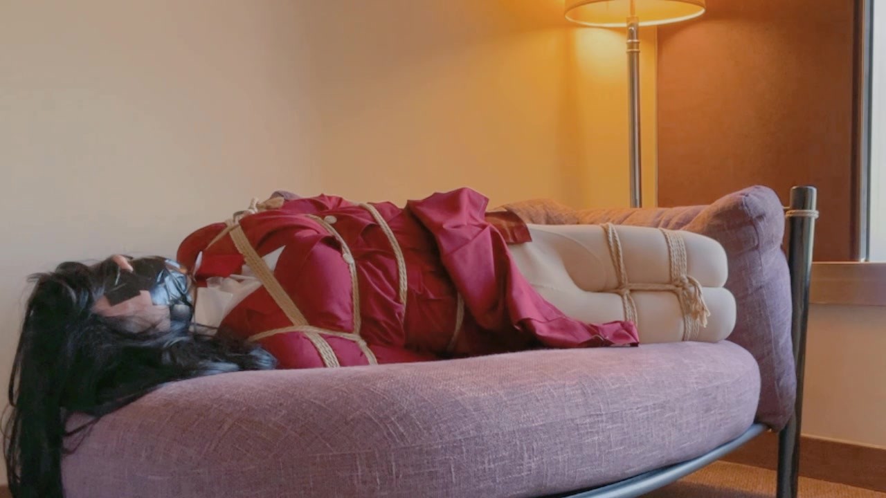 可怜的大小姐诺诺又一次被坏人抓住啦。这一次,诺诺穿着红色的学生制服、肉色连裤丝袜和可爱的白色短袜。这个绑匪似乎知道诺诺擅长挣脱捆绑,所以他特地把诺诺绑得很紧,用袜子堵住了诺诺的嘴,并用胶带封住了她的嘴巴和眼睛,以防她逃跑。诺诺唯一的逃跑机会就是当绑匪出去联系买家的时候,把她一个人留在了房间里,如果她能挣脱捆绑,她将获得自由。然而,这个绑匪的捆绑技术非常好,尽管诺诺拥有很好的运动能力和柔韧性,但她仍然无法从这个严格的驷马紧缚中逃脱。同时,由于诺诺的眼睛和嘴巴都被胶带封住了,这使她无法看到周围的一切,也无法大声呼救。最后,诺诺筋疲力尽,陷入了绝望。她意识到她的挣扎是徒劳的,她所能做的就是乖乖呆在这里,等待一名英雄来拯救她。