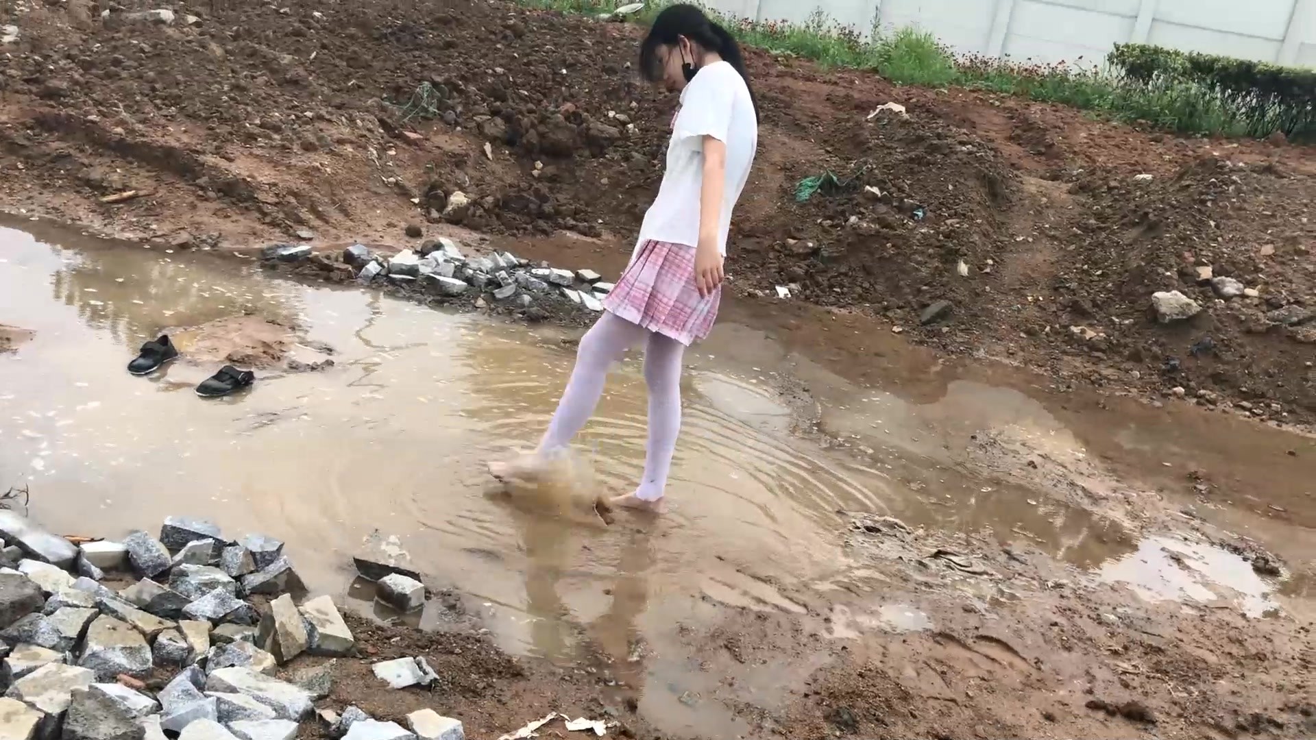 【小瓶子】粉色jk白丝工地旁玩泥玩水