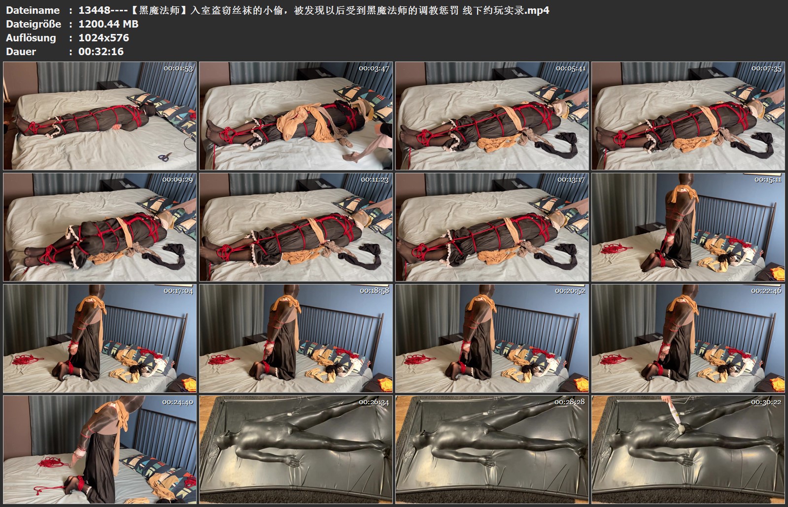 入室盗窃的小偷被黑魔法师抓住了,无法逃脱的小偷被迫接受黑魔法师的调教。首先使用红绳绑住全身,再用丝袜套住小偷的头部和双臂,丝袜绑好以后,小偷被固定在床上,等待着黑魔法师的下一步调教。双手被丝袜的一个袜筒套在后背做成单手套,并且和脚踝绑在一起进行固定,这样小偷就无法逃跑了。黑魔法师最后拿出了自己的真空床,将想要逃跑的小偷装进真空床里面进行调教,真空床紧贴着小偷的身体,把他固定在里面,这样就没有逃脱的机会了。