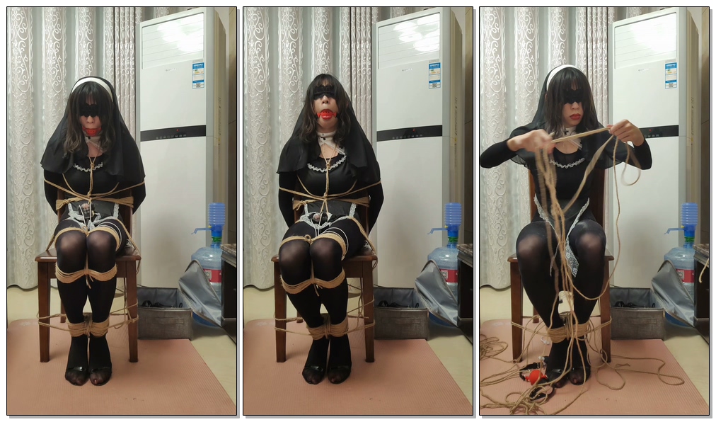 新衣服到了,这套修女服跟蕾丝眼罩意外地很搭配唉,加上口红,看上去真的特别欲特别背德。试着用了新买的麻绳,只做了简单的去味处理,没有烧毛,挺扎人的。还用上了新买的训练器,狠狠地榨出来了