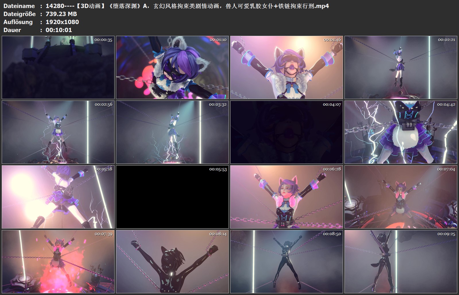 【3D动画】《堕落深渊》A,玄幻风格拘束类剧情动画,兽人可爱乳胶女仆+铁链拘束行刑