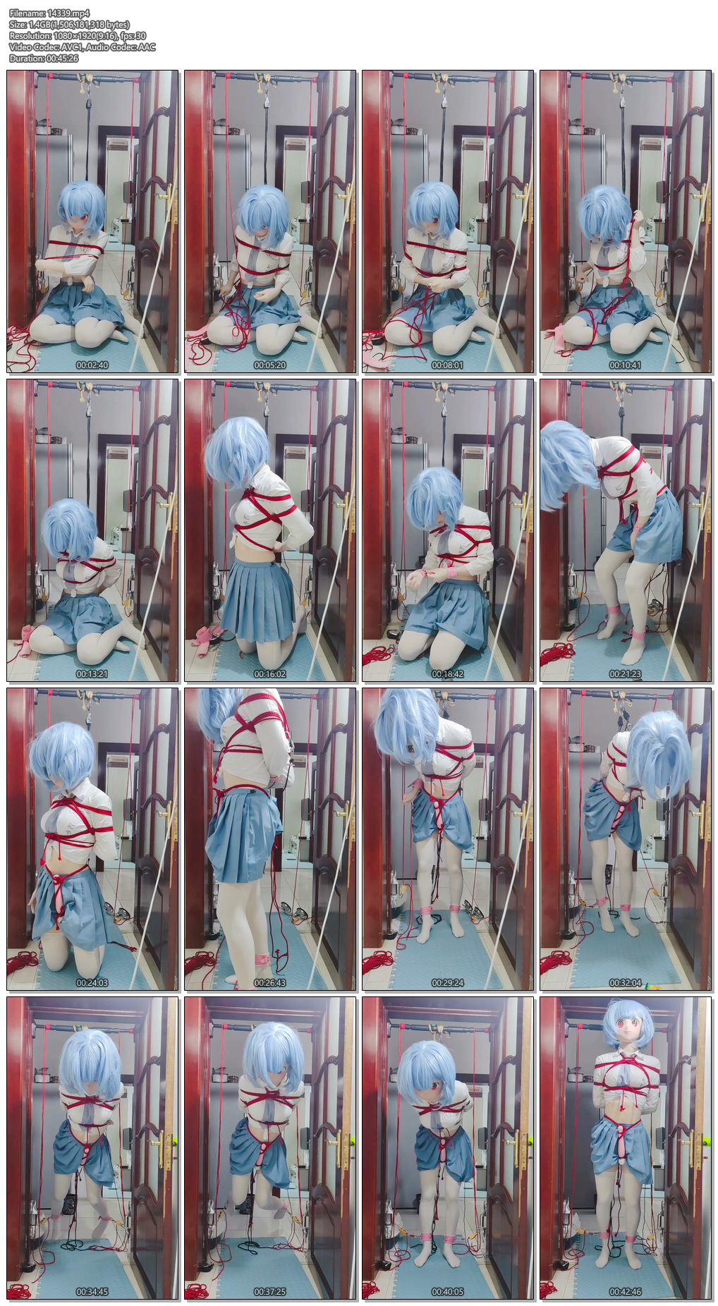 吊缚越来越熟练啦,不过这次绑着震洞棒的绳子不小心松了,以至于震洞棒没有贴紧下半身,[X_X]若有若无的,拼命跺脚让工具人来帮忙工具人也不管,只能靠着扭来扭去来获得一点可怜的[X_X],拼命的像是跳钢管舞一样在门框上蹭着,企图把震洞棒压紧在下半身,但绳子的长度根本不够用,脚尖踮起到颤抖也不够,只能是胸部在门框上摩擦着,努力想象下半身的[X_X],好好的强高硬是玩成了寸止,好气哦!