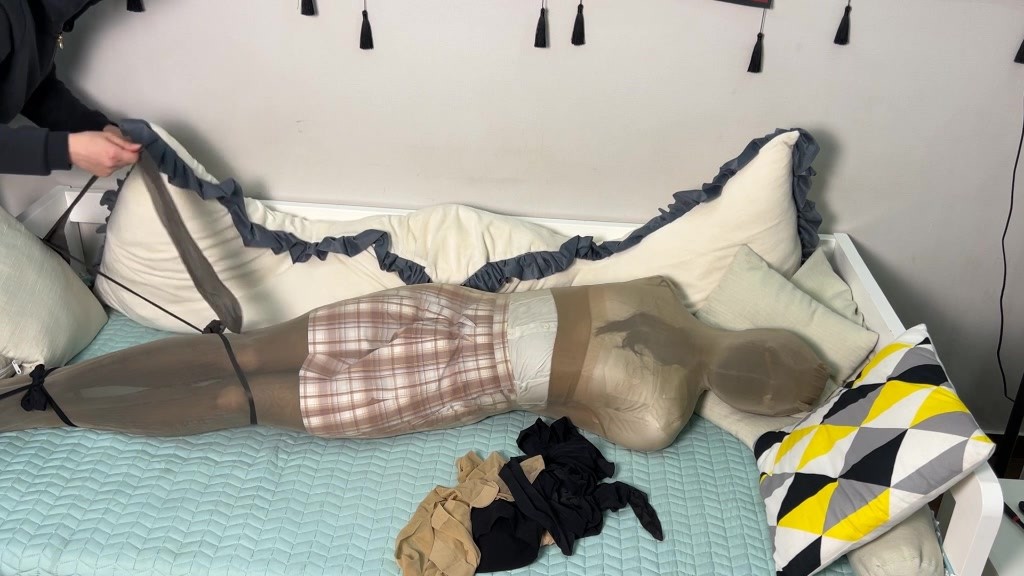 夕的丝袜末日 丝袜多重囚禁 莱觅丝袜套头后手直臂拘束 多双丝袜固定全包定死在床上 然后舞蹈鞋塞丝袜气味控制 最后AV棒子强制GC