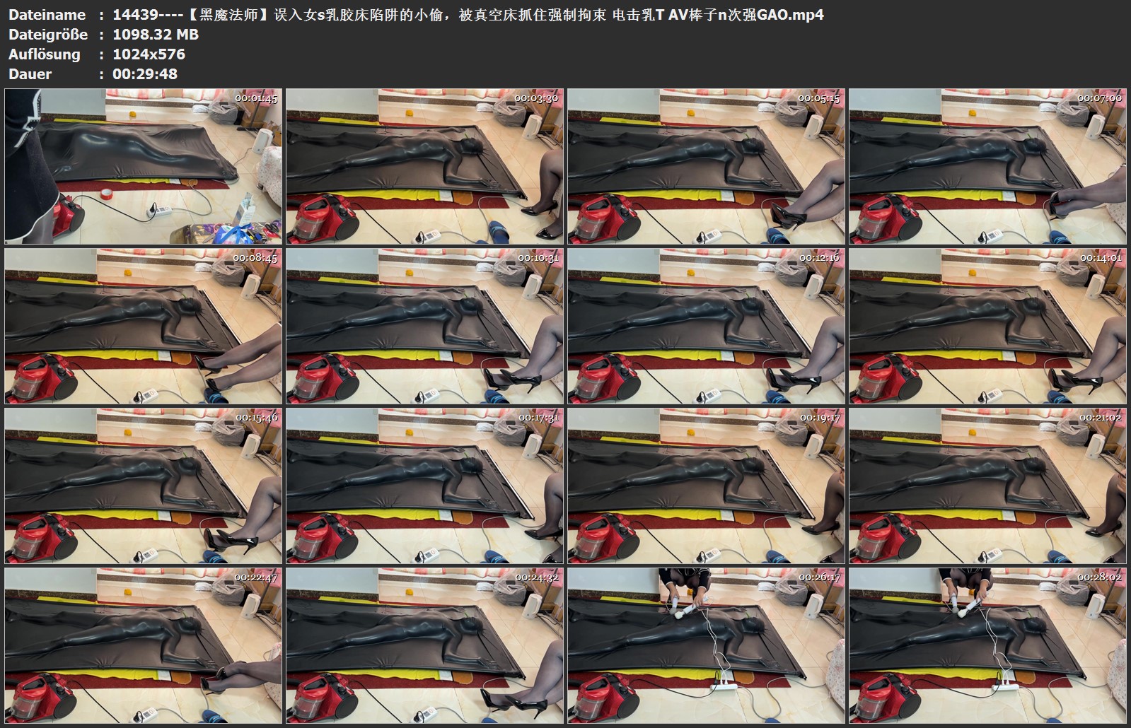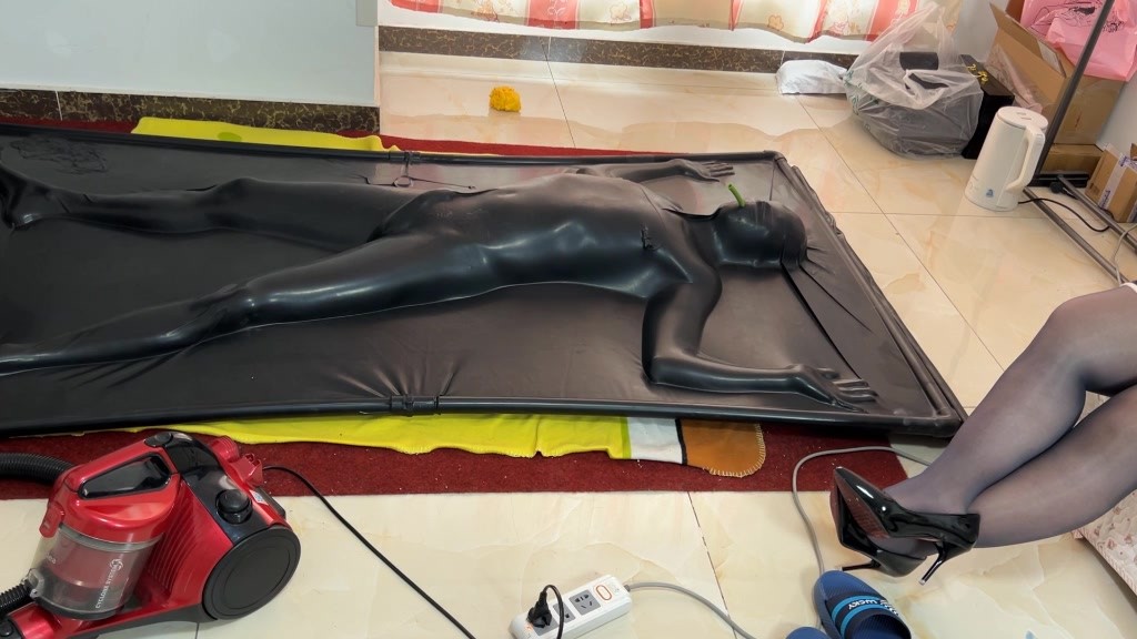 钻进去后躲在暗处的女s出来打开了吸尘器抽干了乳胶真空床里的空气 小偷就被困在了里面 无法动弹 无法说话 还没有空气 很快小偷就[X_X]了过去 等待小偷的是 无尽的黑暗拘束 和电击乳T 还有无限的强制GC