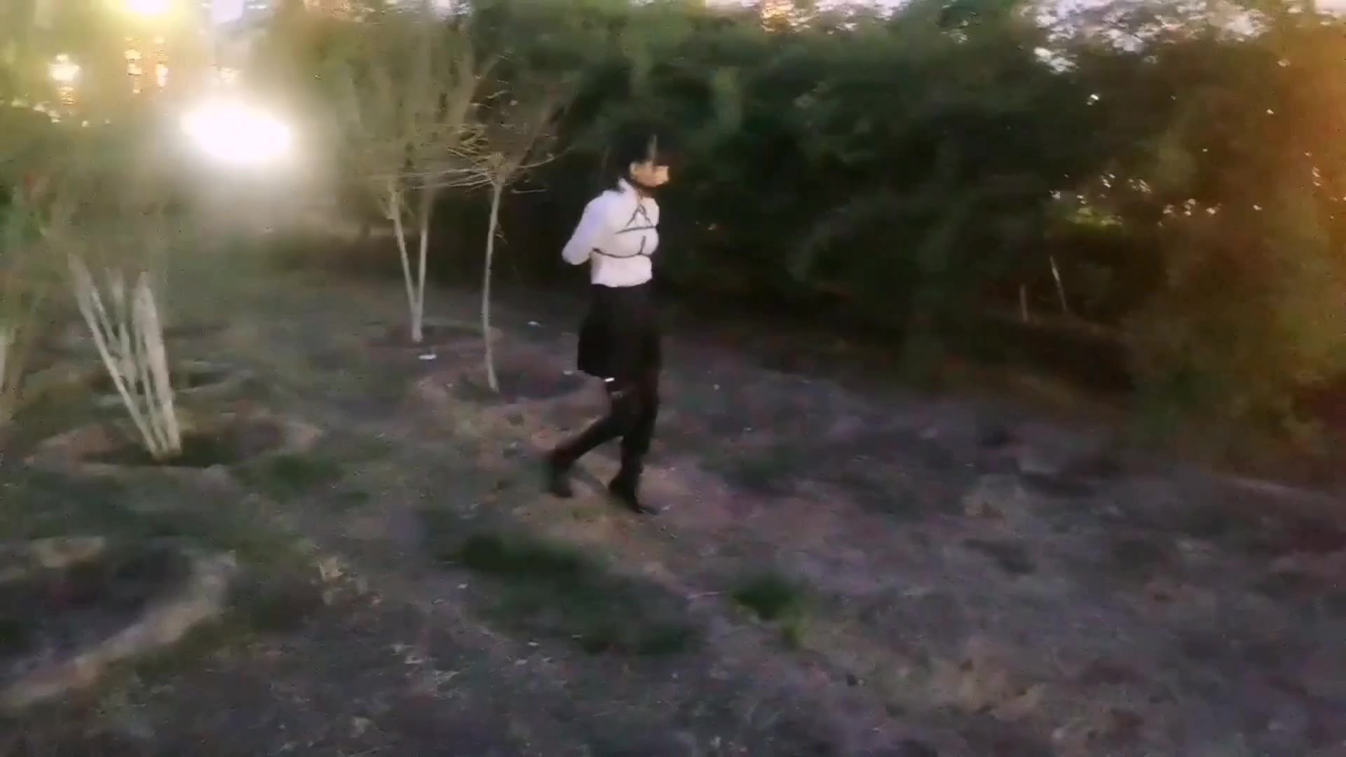 【HD飞天原创】悦儿五角星后高手紧缚,假y具睹嘴,郊狼 电击y塞和g塞放入下面,押着悦儿努户外寻求剌 激