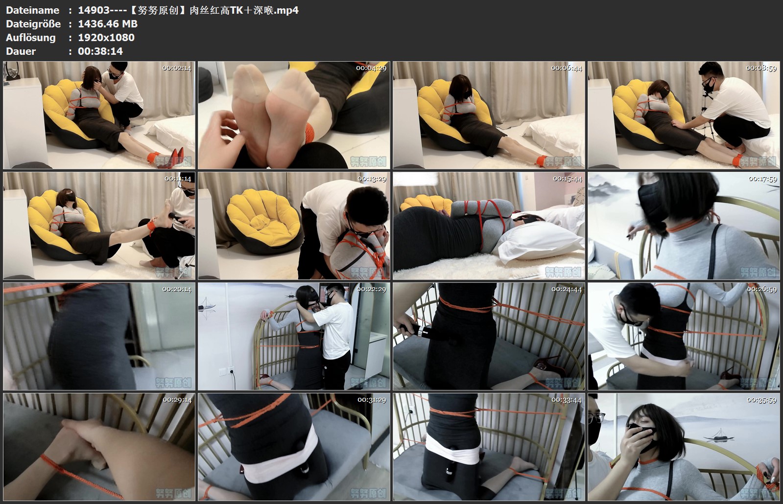 努努穿着肉丝跟12CM红高被五花大绑TK,最后连脚底也被绑了起来。之后努努被双手双脚分开绑在了椅子上,腰跟脖子也没有被放过。然后被戴上了假J具口球。等待着努努的是[X_X]的接连攻击。最后粉丝又把努努捂晕丢在了房间