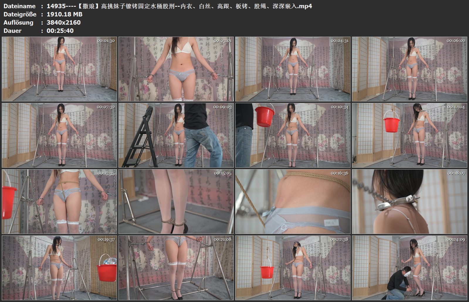【撒琅】高挑妹子镣铐固定水桶股刑--内衣、白丝、高跟、 ...