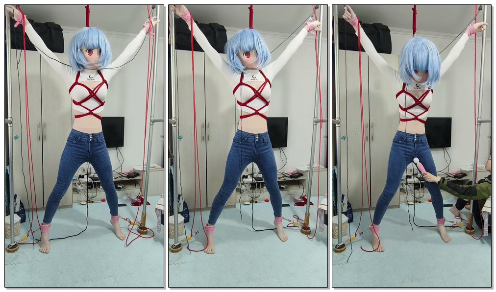 过分自信的天天只用一根绳子吊住胸口,就把四肢拉紧到最紧,固定在铁架子上,结果绑起来之后才发现根本解不开,敲打钢管召唤来室友结果却是遭遇了更羞耻的玩弄,没有保护的腋下被疯狂挠痒,想要躲却一点躲避的空间都没有,双臂被高高拉起,所有弱点都暴露出来了,最后被强高到工具人手都酸了才把我放下来,吊起来时候只能踮着脚,放下来之后直接跪在地上了qwq