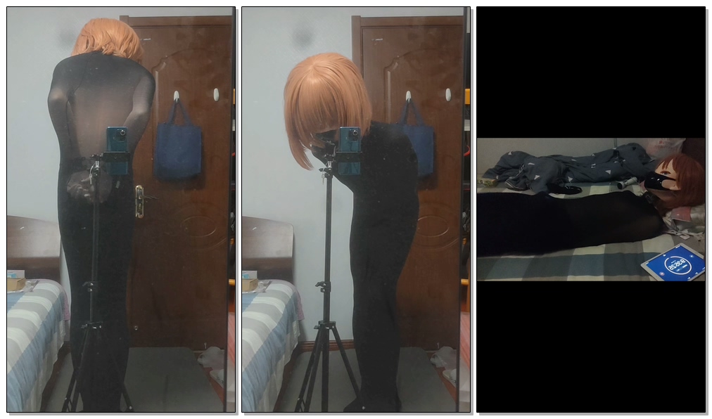 【kigurumi】呼吸控制 被黑色胶衣紧紧包裹住的娃娃,绑在浴缸里,头壳下是rf乳胶头套红嘴无法说话,将被怎么玩弄呢~