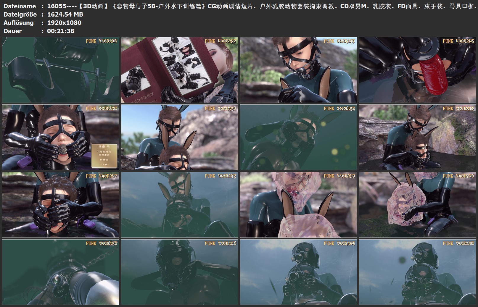【3D动画】《恋物母与子5B-户外水下训练篇》CG动画剧情短片,户外乳胶动物套装拘束调教。CD双男M、乳胶衣、FD面具、束手袋、马具口枷、CB锁、ZD蛋BDSM