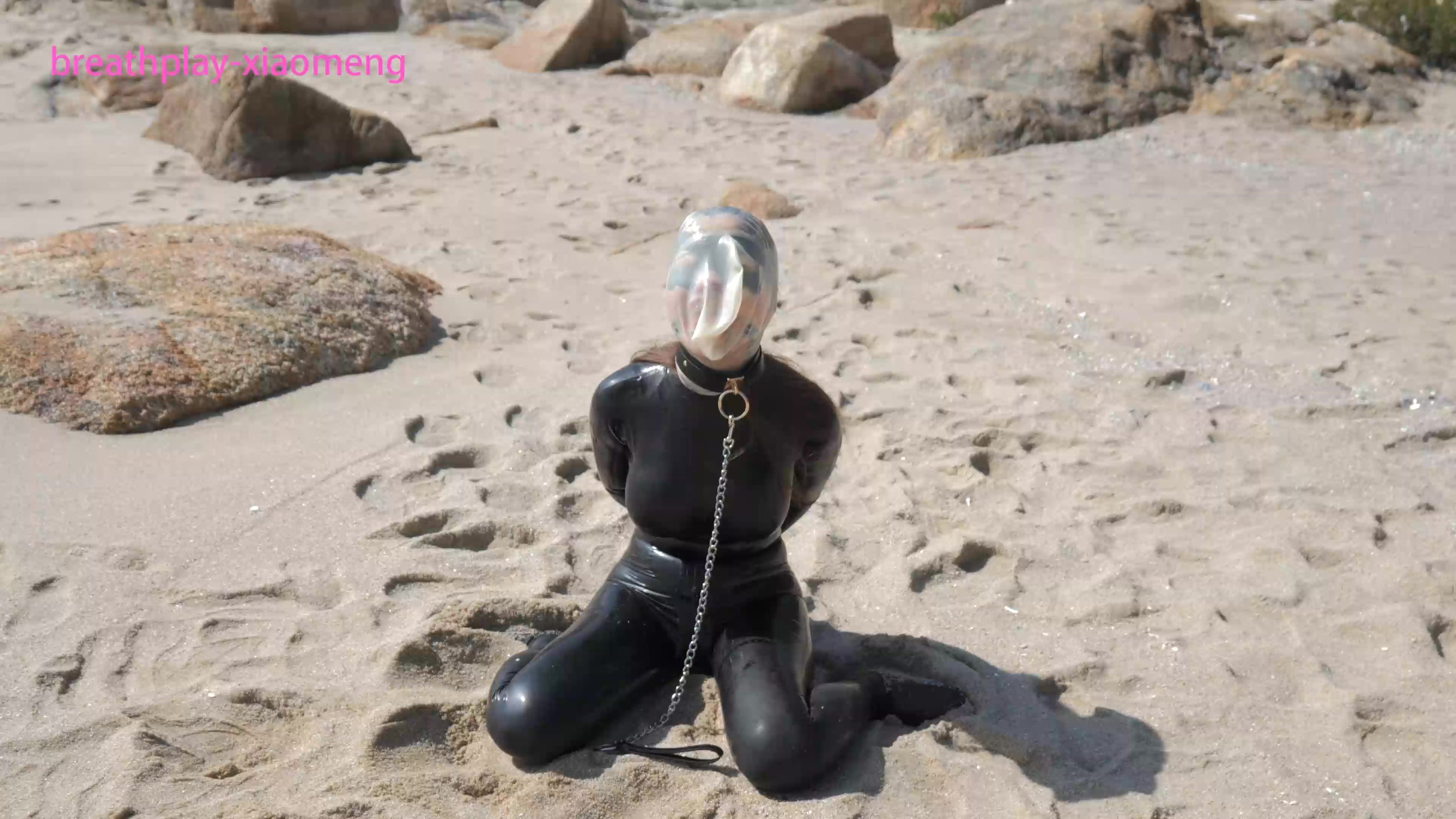 【小萌同学】沙滩户外游戏-乳胶闷热出汗-胶衣乳胶头套闷绝防毒面具调教