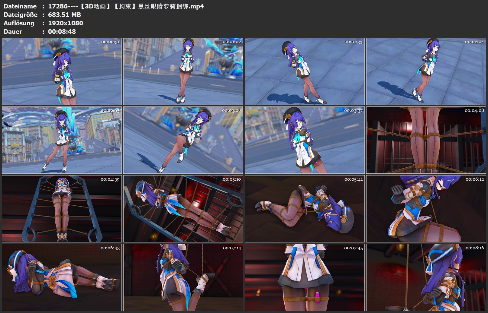 【3D动画】【拘束】黑丝眼睛萝莉捆绑