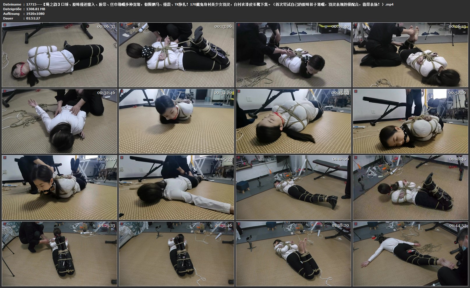 【绳之韵】口球、原味强迫塞入、胶带、丝巾勒嘴多种封堵,极限驷马、强震、TK挣扎!170魔鬼身材美少女羽灵,白衬衣漆皮长靴下集。(首次尝试自己的原味袜子堵嘴,羽灵表现的很配合,...