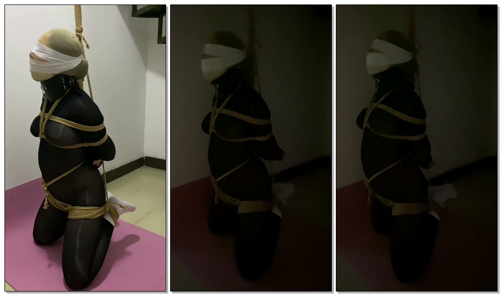 这次没有绑直臂,感觉偏日式的绑法更受力一些,不至于吊一会胳膊就麻了,但是也不可能挣脱。看媳妇挣扎了一会后,把灯一关,留媳妇一个人默默享受去吧。