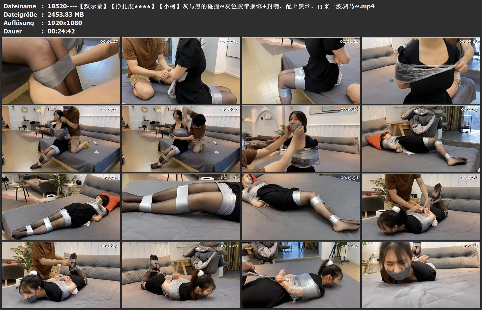 【默示录】【挣扎度★★★★】【小柯】灰与黑的碰撞~灰色胶带捆绑+封嘴,配上黑丝,再来一波驷马~