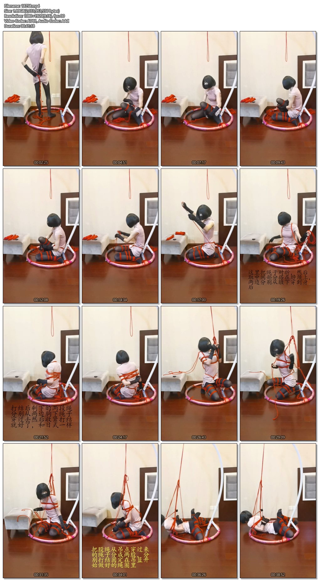 想了一个新的定时锁加绳子的方法,正好用在这期自缚里,绑一个固定在吊篮下面的开腿驷马自缚,这个法子绑起来太累了,再加上萌熊的定时锁好像出了点问题,绑着修了一个多点最后好使的时候已经没什么力气了,所以最后绑好挣扎的时长没有特别多,这期以教学为主,视频里加了大量的字幕教程,大家想学习的话可以看一下,不过一定要注意安全!定时锁一定要用结实的