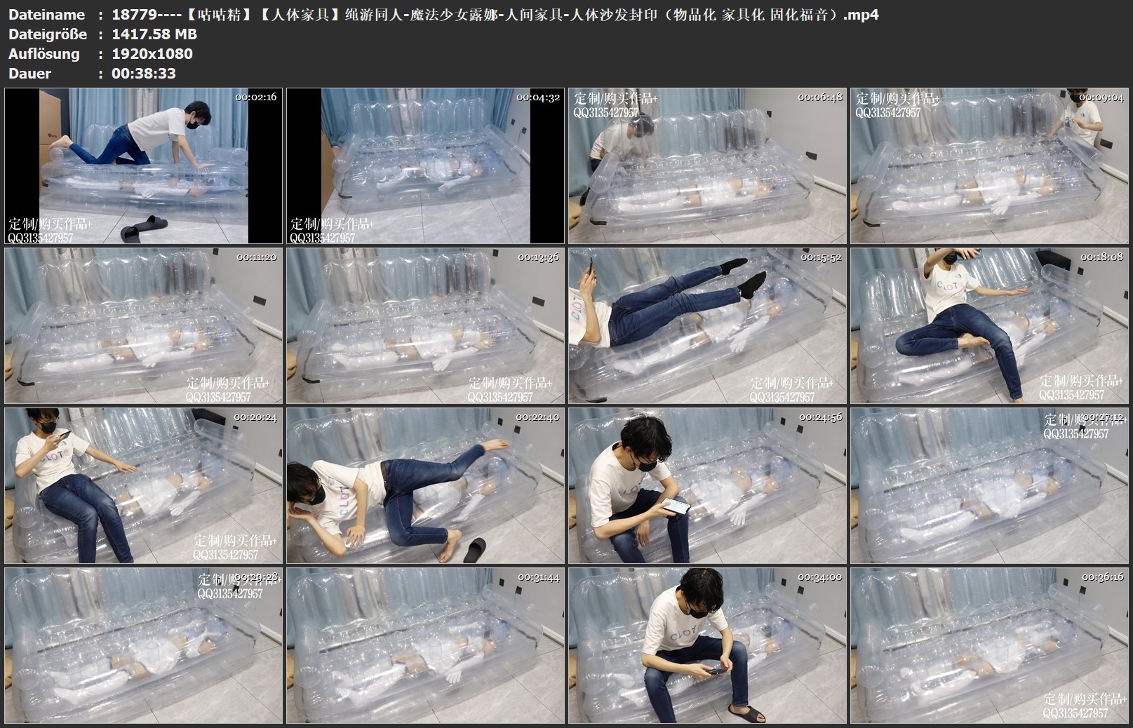 可怜的露娜酱就这样被封印在透明的充气沙发里,忍受着闷热、缺氧和充气拘束的压迫感,被人使用着。