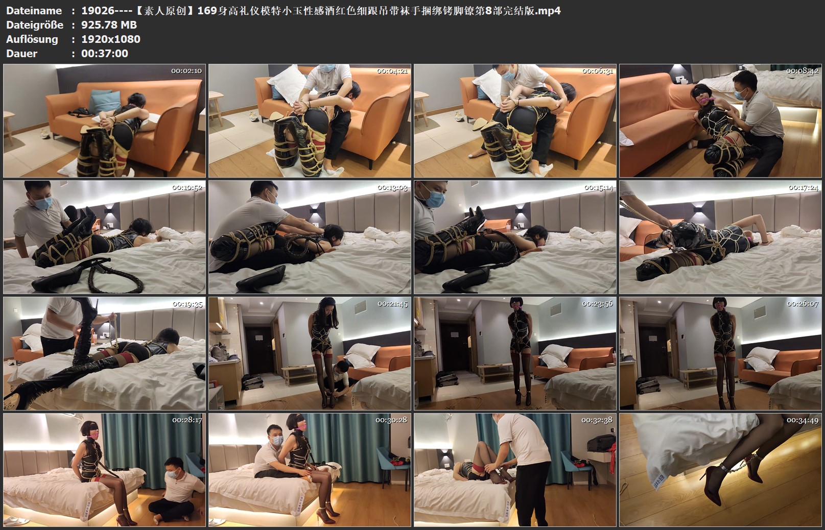 【素人原创】169身高礼仪模特小玉性感酒红色细跟吊带袜手捆绑铐脚镣第8部完结版