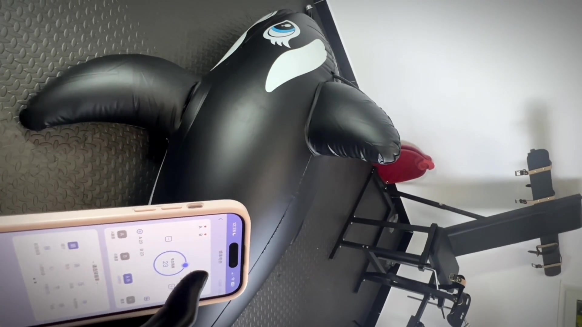 再将虎鲸充气膨胀。与早先拍过的真空床抽气视频不同,虽然都是不能动弹,但是抽气是一种被动压迫,压力是来自乳胶的收缩,而充气则是主动挤压,气压的压强比抽气的大,压力大带来改变人的身体动作的作用,没办法像真空床那种保持一个动作。而且据这次小M的描述,在里面充气的压迫要比乳胶真空床的压迫感更加强烈,整个人像被夹在了空中。