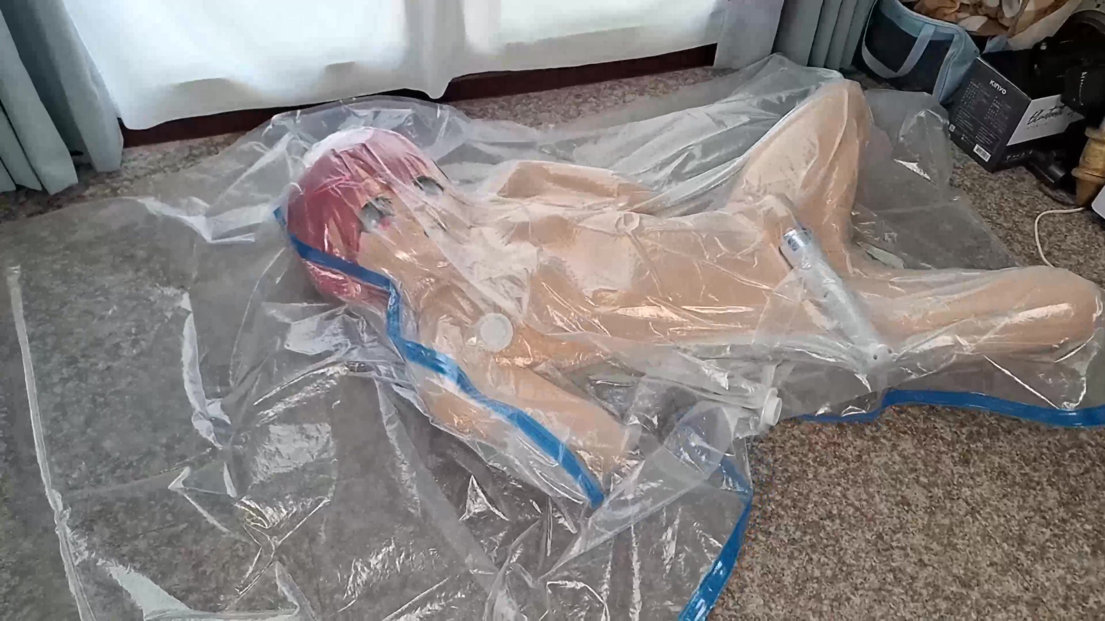 先是被锁进了全身的K9皮里,被一番玩弄之后,被丢进了双层的真空袋里,被压缩到极致,却因为穿着K9,完全无法挣扎和自行逃脱