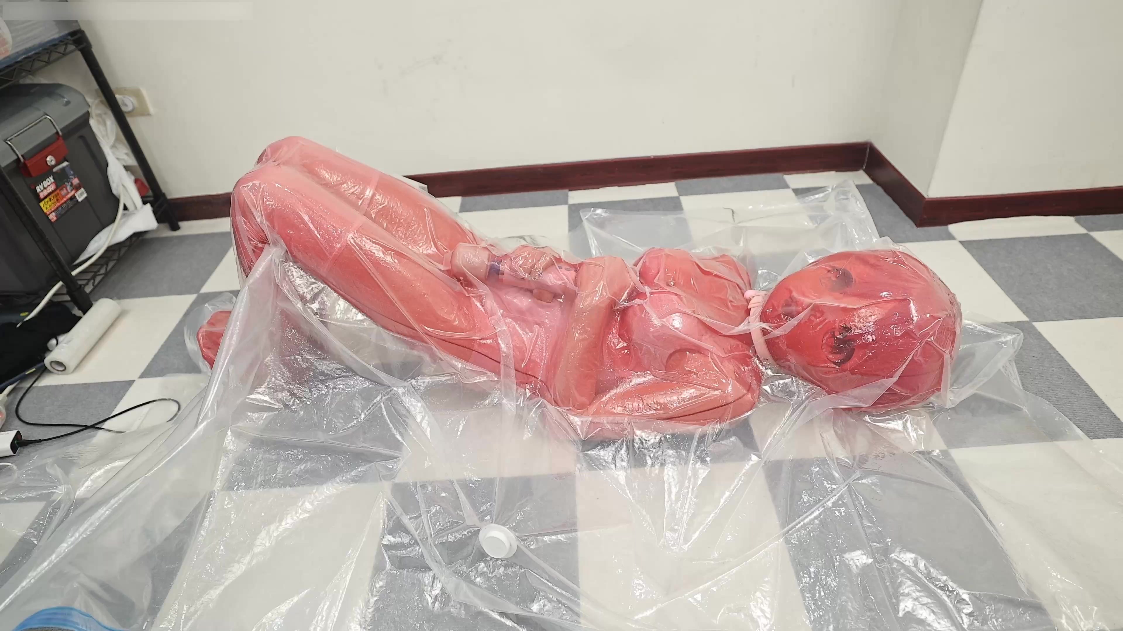 加上全包丝袜真空,从外面看起来完全看不出来里面是个人...在其中的娃娃从享受到挣扎,偶头的表情看起来却依旧可可爱爱