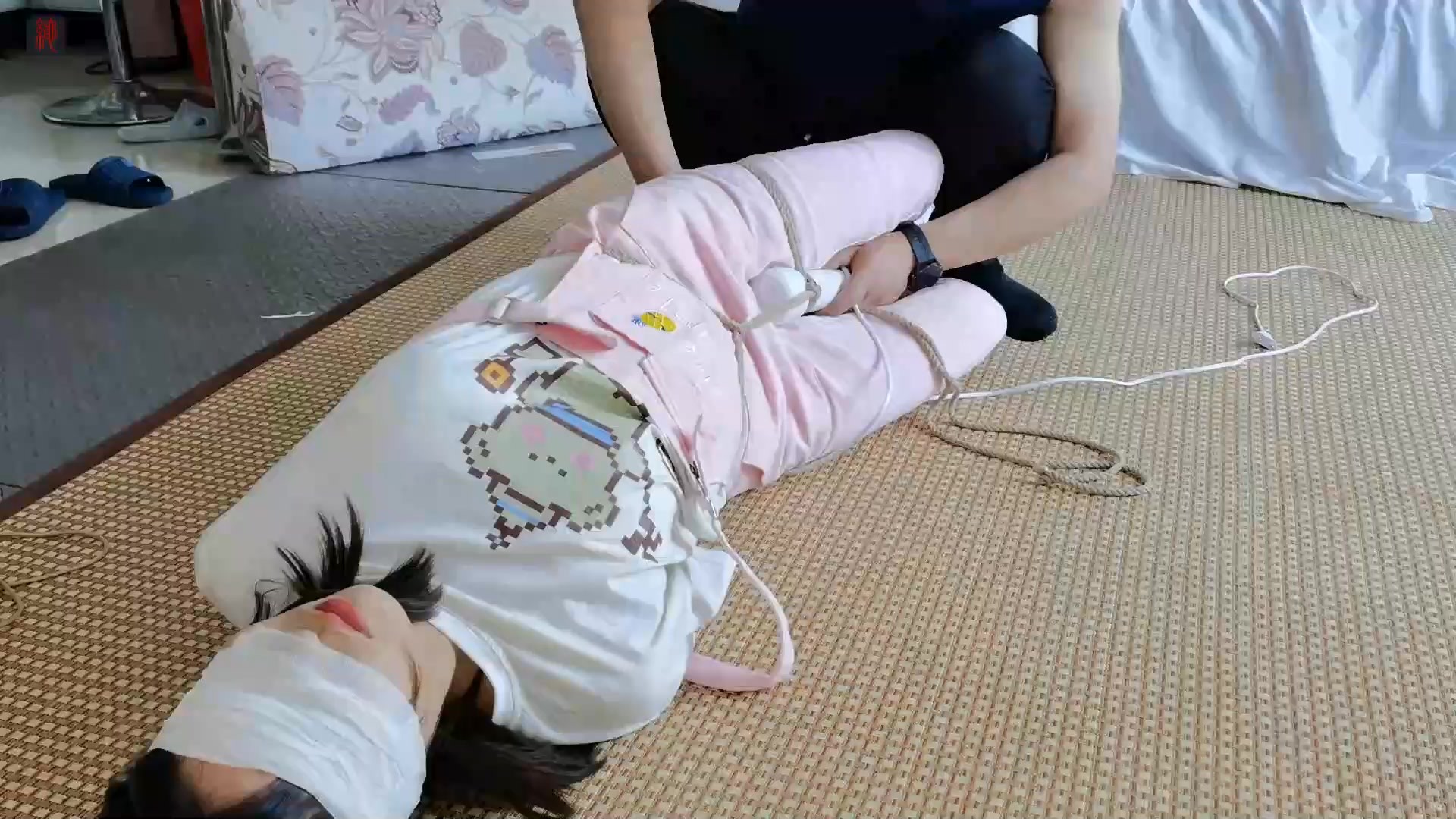 【绳之韵】瑾瑜小妹背带裤镣铐游戏(第二集)镣铐驷马自救游戏,蒙眼、原味,难度升级