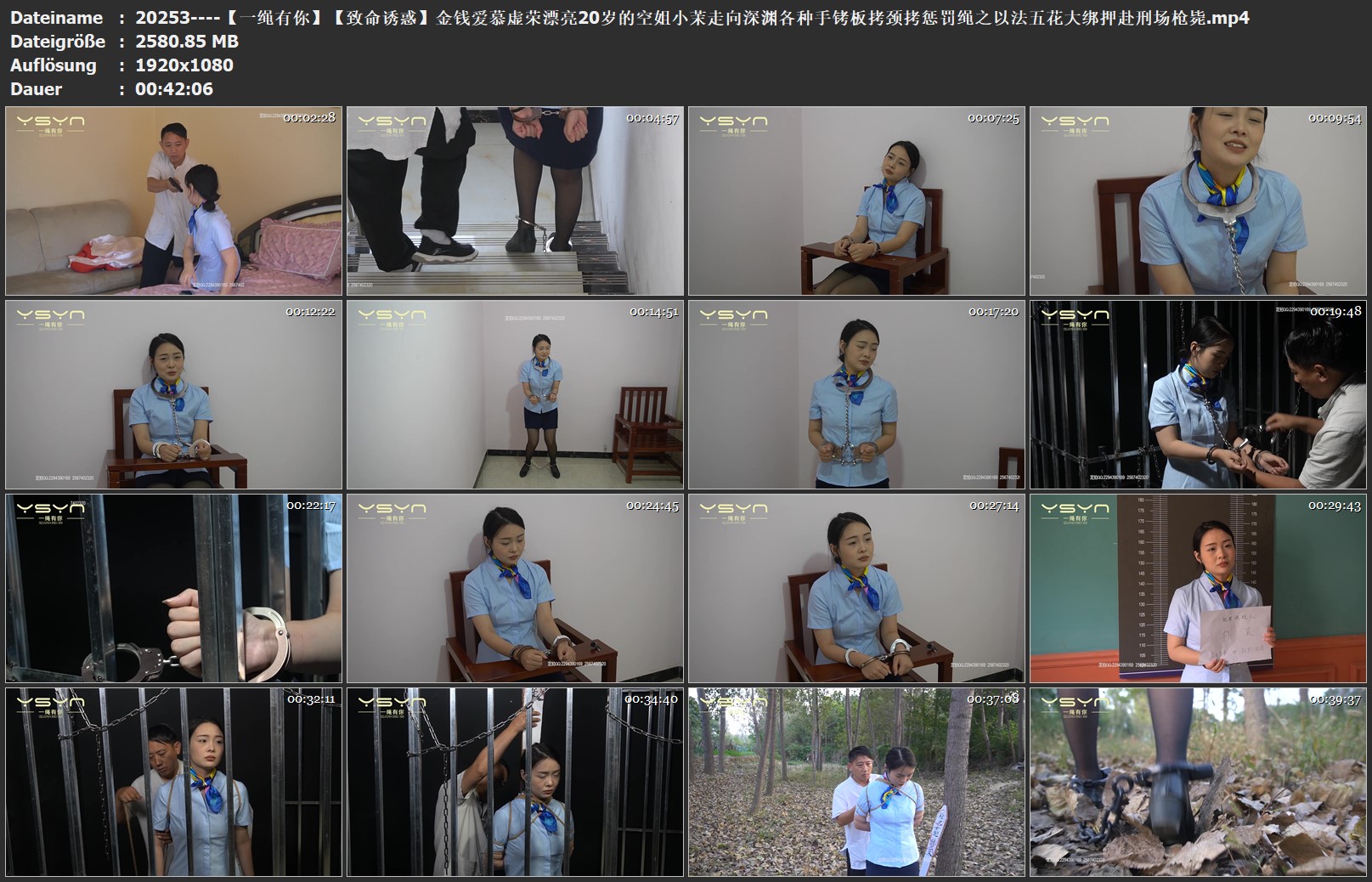 【一绳有你】【致命诱惑】金钱爱慕虚荣漂亮20岁的空姐小茉走向深渊各种手铐板拷颈拷惩罚绳之以法五花大绑押赴刑场枪毙