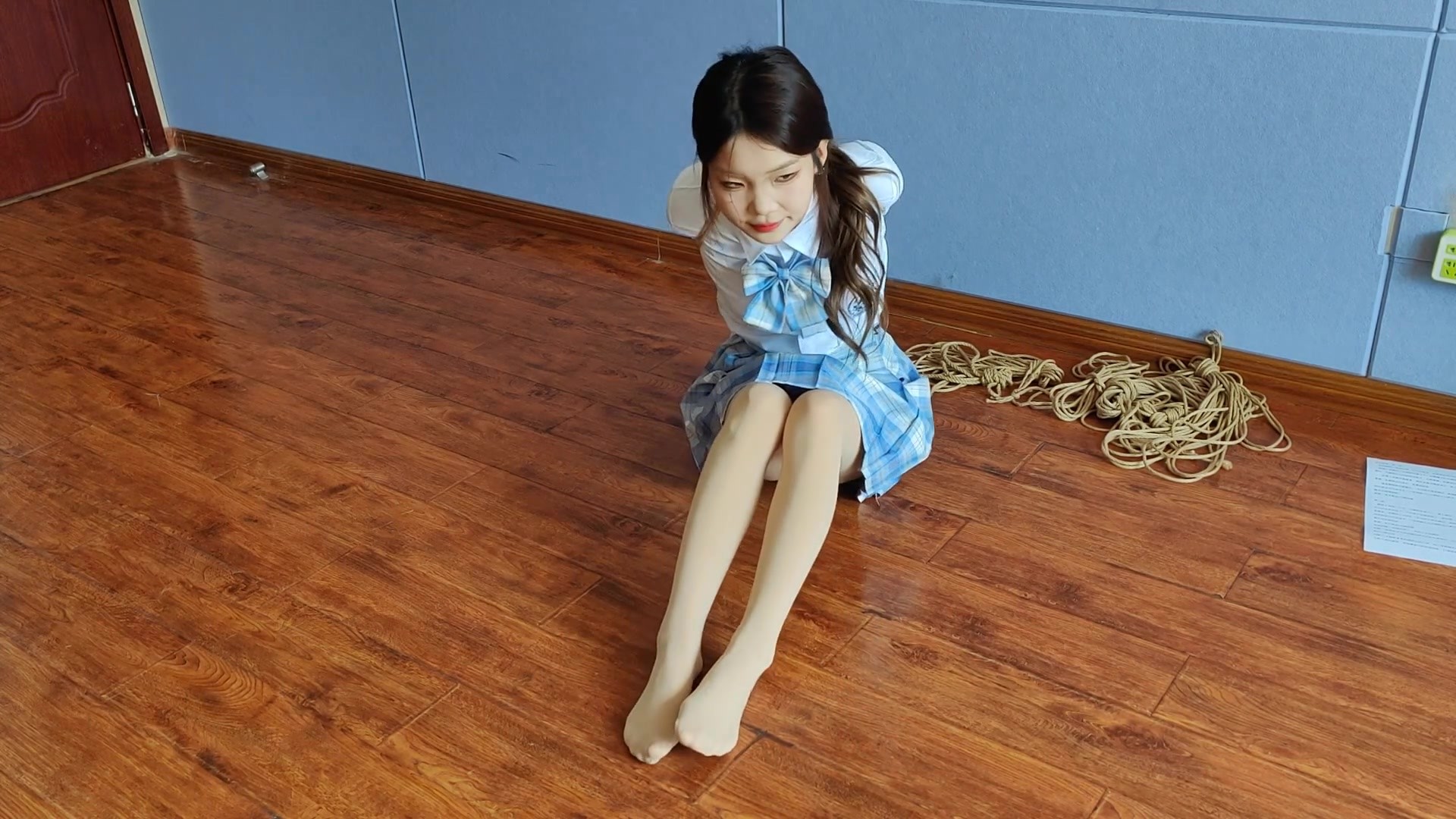 小雅绑上一个直臂海老缚,戴上口球放置起来,本来想要用个大点的口球,但是因为小雅嘴很小,所以只能小号,直臂海老解开的时候,手已经完全麻了,也是非常贴心的拿颈膜枪给小雅按摩,之后接着就是绑上日式,在把脚紧紧绑上,在塞上一整双丝袜,完整的塞进去,再用胶布封住,小雅只能挣吟原地挣扎,最后绑上非常紧的驷马,拿出嘴里的丝袜的,丝袜拿出来已经湿透了,塞上口球,在用绳子吊起,使得腰部反弓的效果。