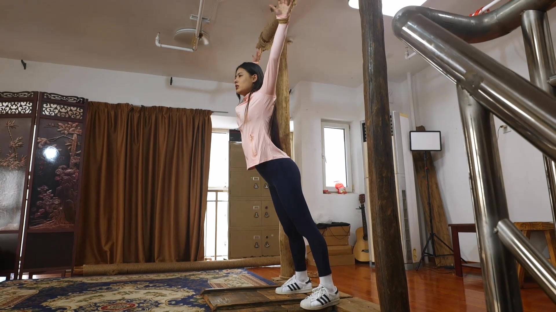 【缚予】线下真实调教之新妹子小晴高跟鞋分腿杆初调教!高跟鞋+