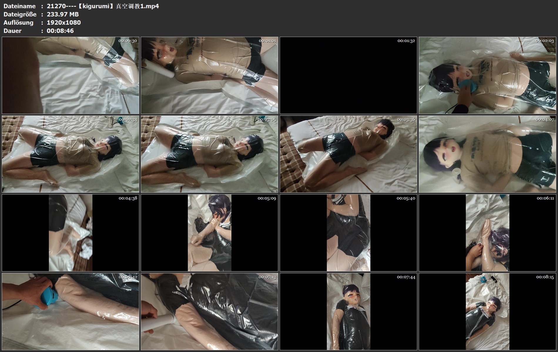 【kigurumi】呼吸控制 被黑色胶衣紧紧包裹住的娃娃,绑在浴缸里,头壳下是rf乳胶头套红嘴无法说话,将被怎么玩弄呢~