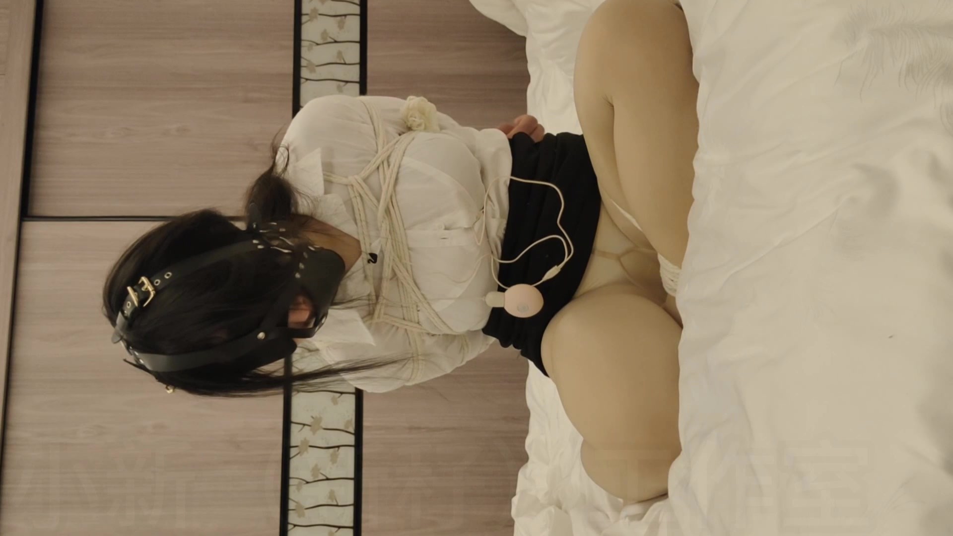ol装搭配上肉丝 那走光的胖次 微透的白衬衫 撑起的胸部 身上的绳子将那上司的身材绑的凸显 被忙上眼睛戴上马具口球的她