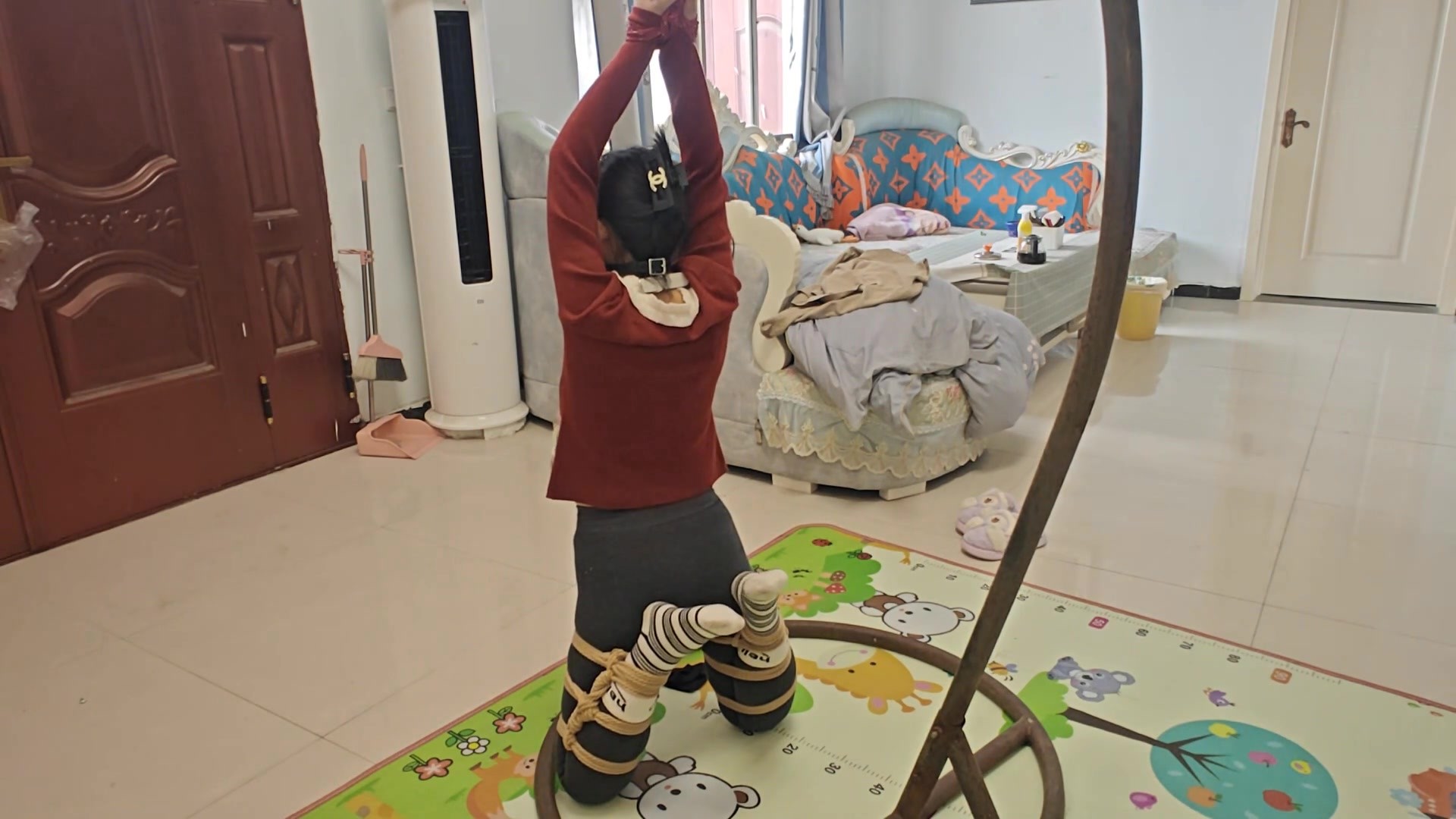 被绑的欲望越来越强烈,终于忍不住了,今天让老公绑个m腿 然后被吊起来,这个姿势我看别小姐姐被绑的时候都坚持不了很长时间,所以我打算试一下突破自己,果然,我还是高估了自己,难受并快乐着,老公,趁我快坚持不住啦,趁机要加零花钱,这个老6我也是服了!