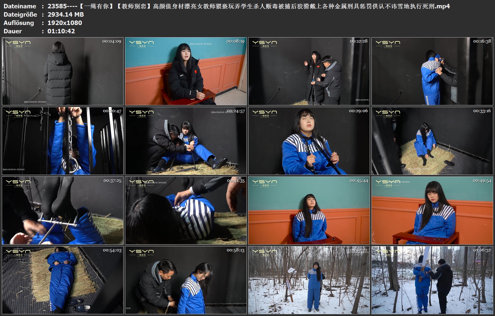 【一绳有你】【教师别恋】高颜值身材漂亮女教师猥亵玩弄学生杀人贩毒被捕后狡猾戴上各种金属刑具惩罚供认不讳雪地执行死刑