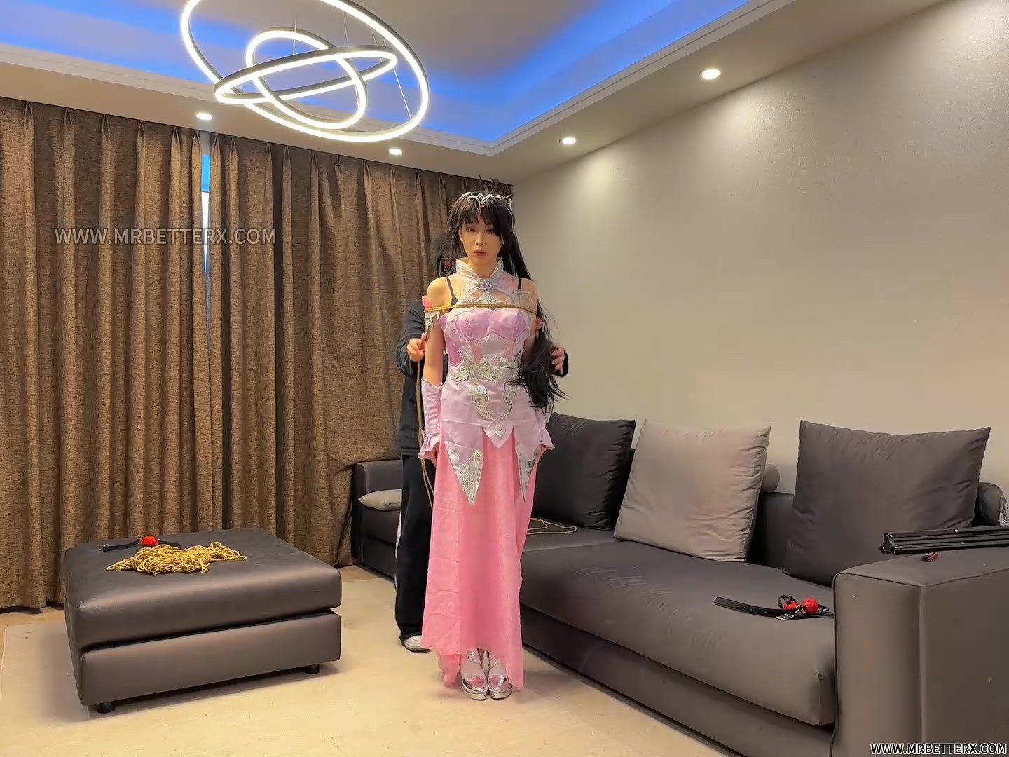 模特倩倩,小舞cos,倩倩的颜值身段还是挺适合cos小舞的,头发稍微有一丝飘逸,不过并不影响小舞姐的盛世美颜,口球堵嘴,流口水,挠脚心,全身紧缚加调教