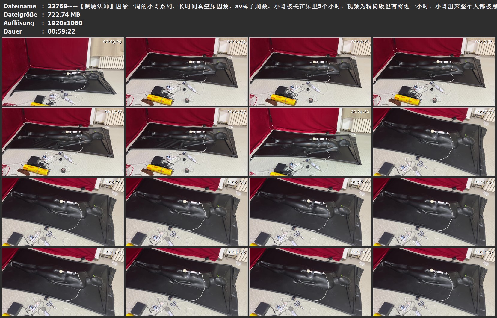 【黑魔法师】囚禁一周的小哥系列,长时间真空床囚禁,av棒子刺激,小哥被关在床里5个小时,视频为精简版也有将近一小时。小哥出来整个人都被黑胶床搞虚了