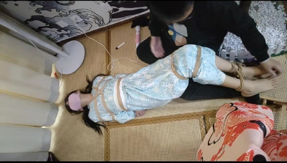 情景一:让妹子换上和服木屐,日式紧缚后,并腿缚,一动不能动后,揉胸虐待慢慢脱她的衣服,无法反抗,刚开始无法接受只能抗议;