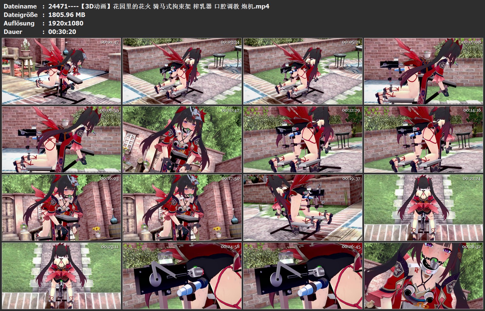 【3D动画】花园里的花火 骑马式拘束架 榨乳器 口腔调教 ...