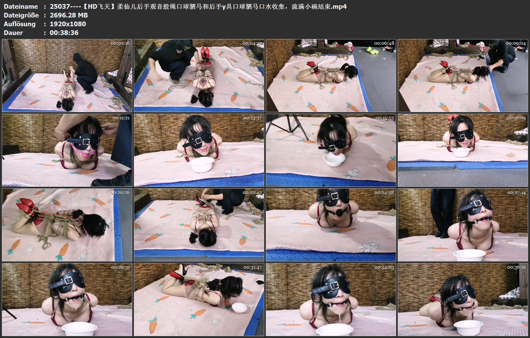 【HD飞天】柔仙儿后手观音股绳口球驷马和后手y具口球驷马口水收集,流满小碗结束