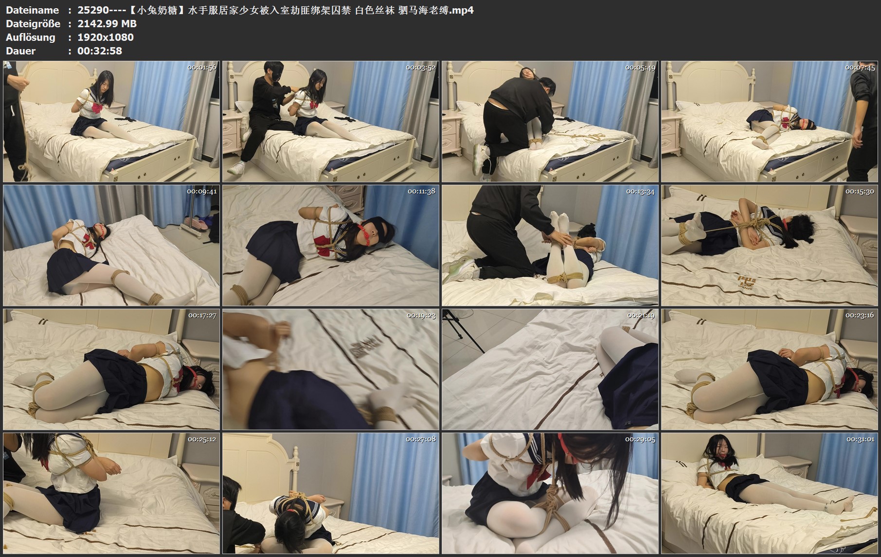 【小兔奶糖】水手服居家少女被入室劫匪绑架囚禁 白色丝袜 驷马海老缚