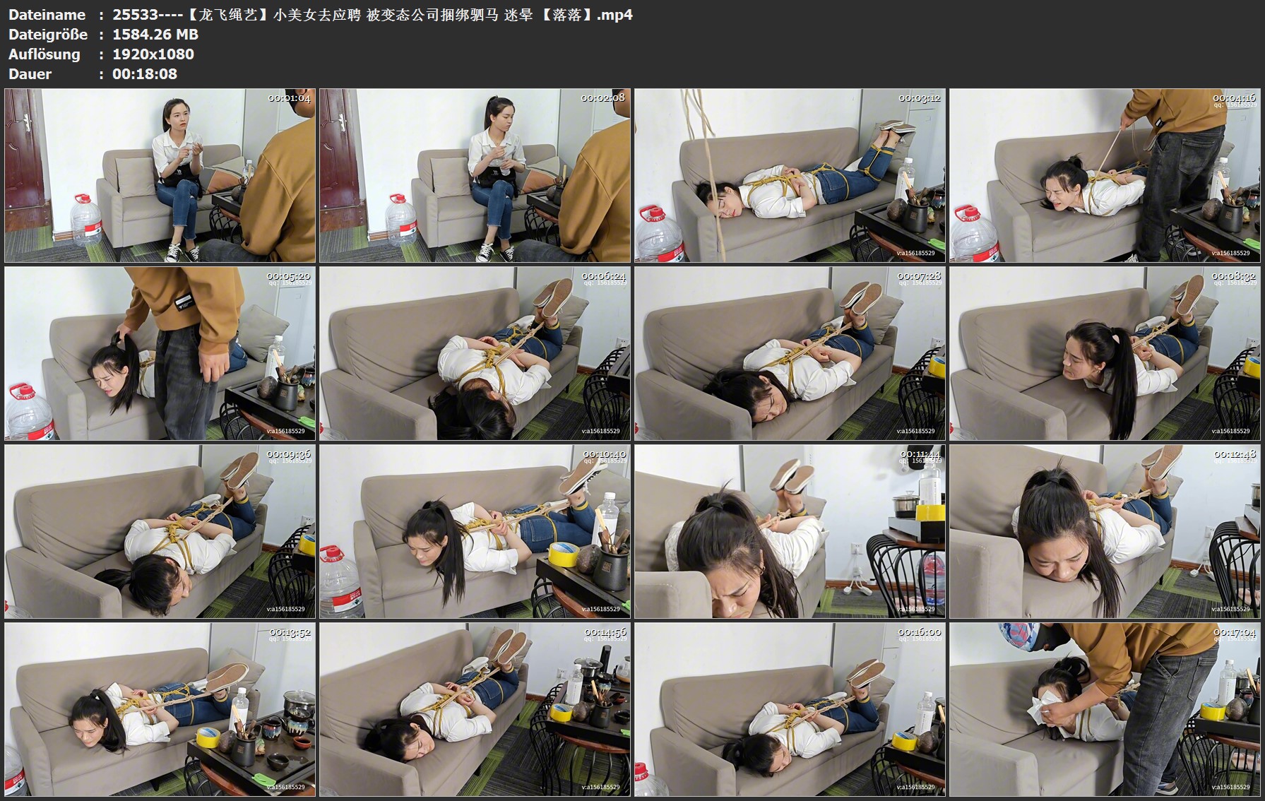 【龙飞绳艺】小美女去应聘 被变态公司捆绑驷马 迷晕 【 ...