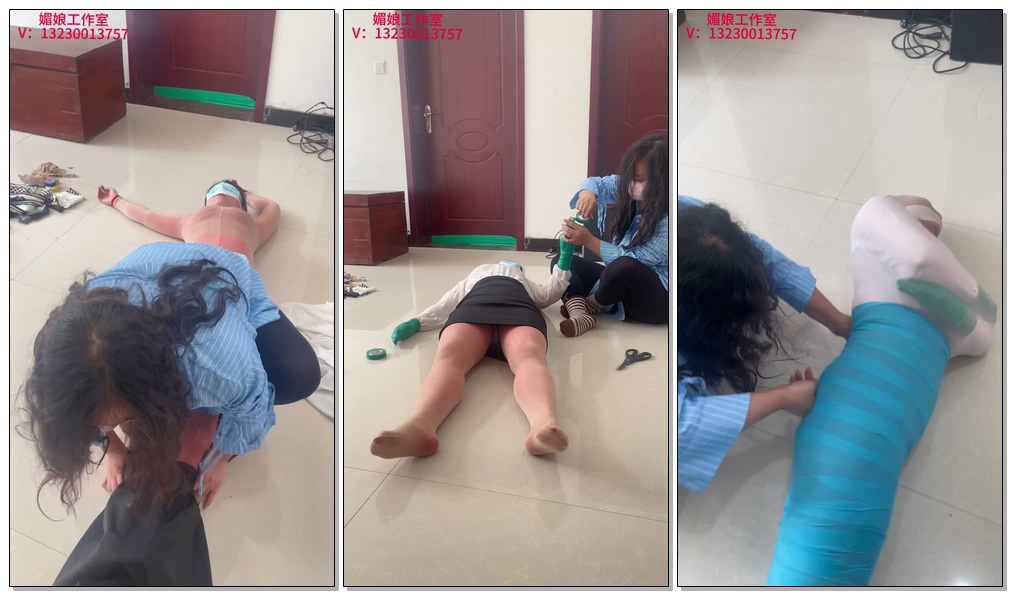 三:女S拿迷药迷晕女M,开始给女M,穿上红色连体丝袜和肉色连体丝袜,在穿上白衬衣,黑色高臀裙,嘴巴里塞丝袜,用丝袜缠一圈,胶带固定。手用短丝袜套三条,每条套完短丝袜一层,缠一层胶带。肉丝套头,套一条粉色全包单筒丝袜,(从脚套,可以拿绷带先缠一些地方)绷带全包到嘴巴那里。剪开一条肉丝,剪开裆部那里,两条裤腿一上一下套,一个裤腿从脚往上拉,一个从头往下套,胶带全包成图片那样。(肉丝剪开上下全包,鼻子留出来吧,眼睛两条丝袜也不会特别看不清)