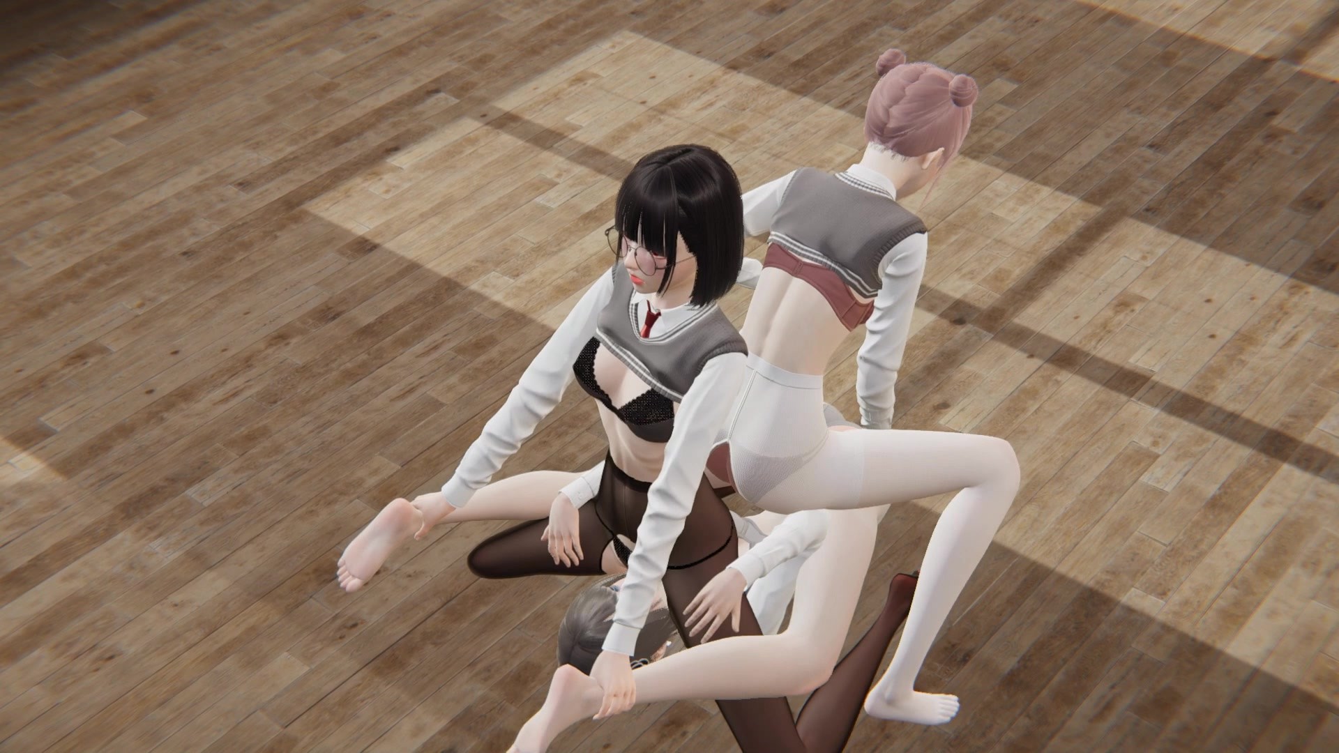 【3D动画】舞蹈房里的少女 两女调教一女 PJ 柔术训练 坐脸 脚踩 折腿