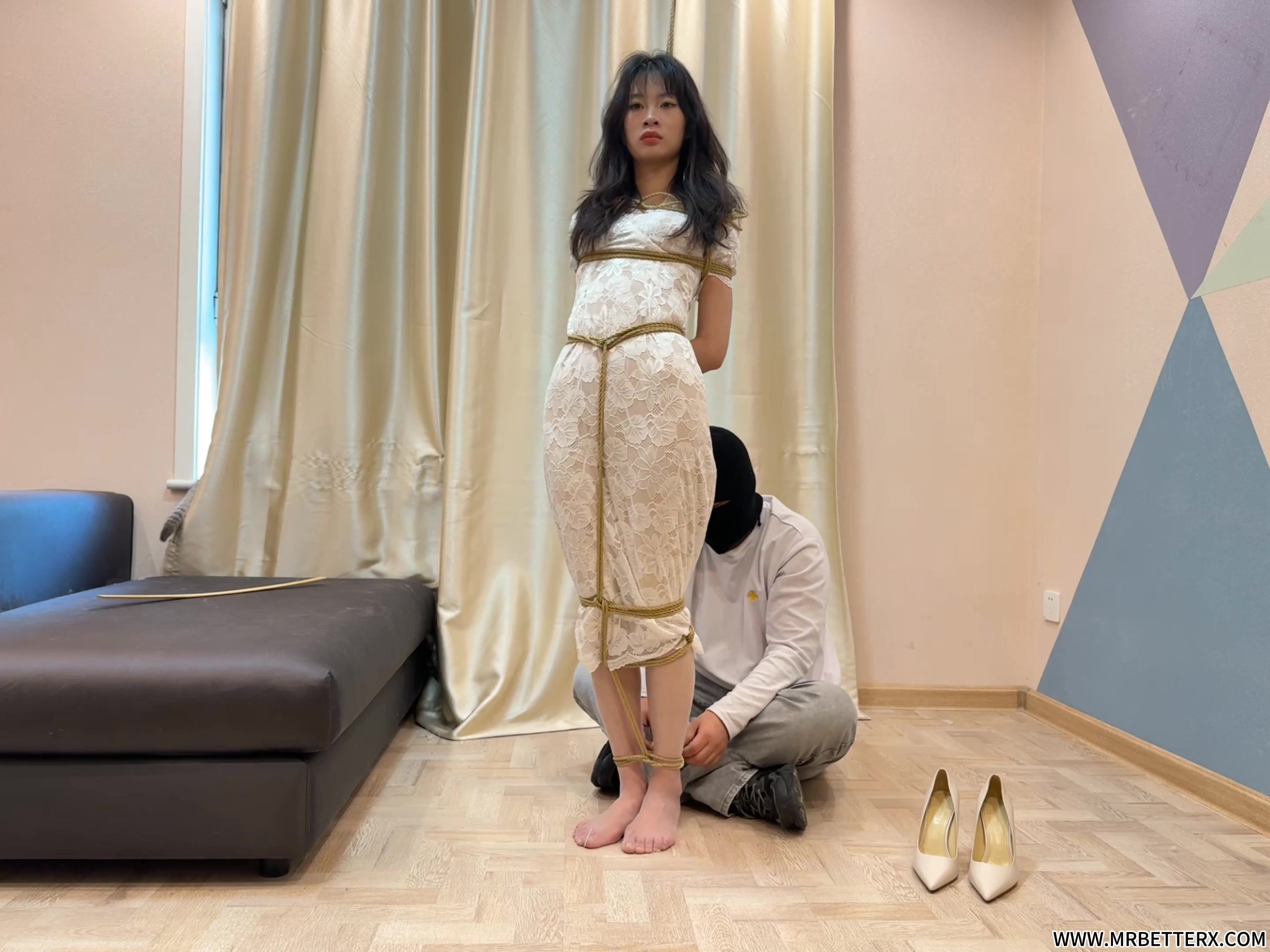 七七白丝高跟入室被绑,后肉丝站缚挠脚,最终白丝驷马挠脚