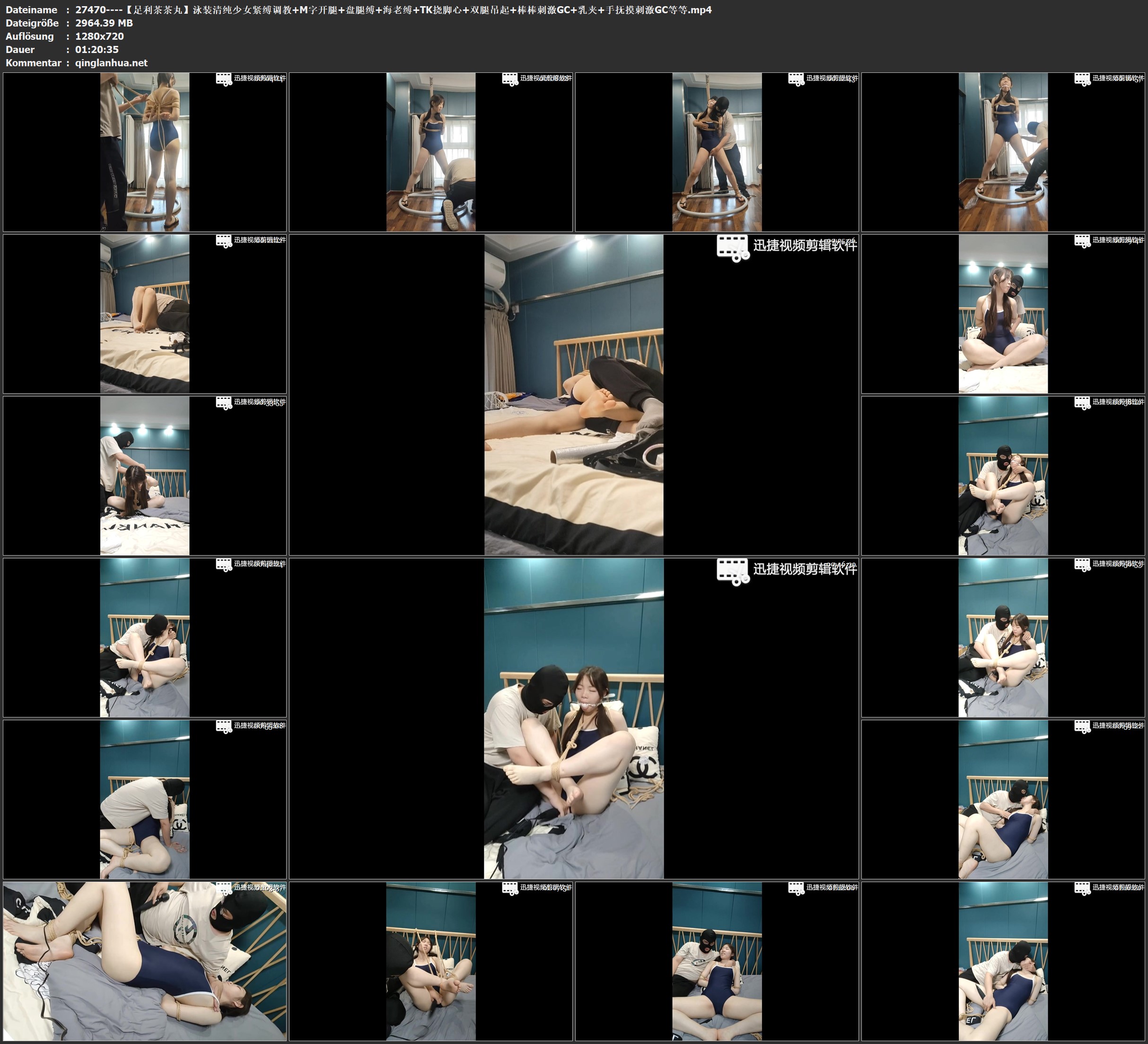 【足利茶茶丸】泳装清纯少女紧缚调教+M字开腿+盘腿缚+海老缚+TK挠脚心+双腿吊起+棒棒刺激GC+乳夹+手抚摸刺激GC等等